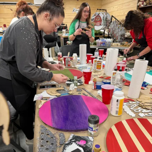 Your party. Your people. Your project. We’ll walk you through every step and bring all the crafty goodness—just show up and let the creativity flow. And yes, you’ll make something you’ll actually want to hang up when it’s all said and painted!